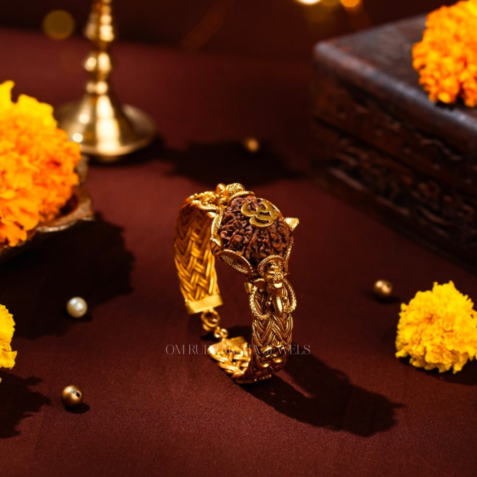 Premium Nepal Rudraksha Bracelet with customizable metal, size, and certification options.