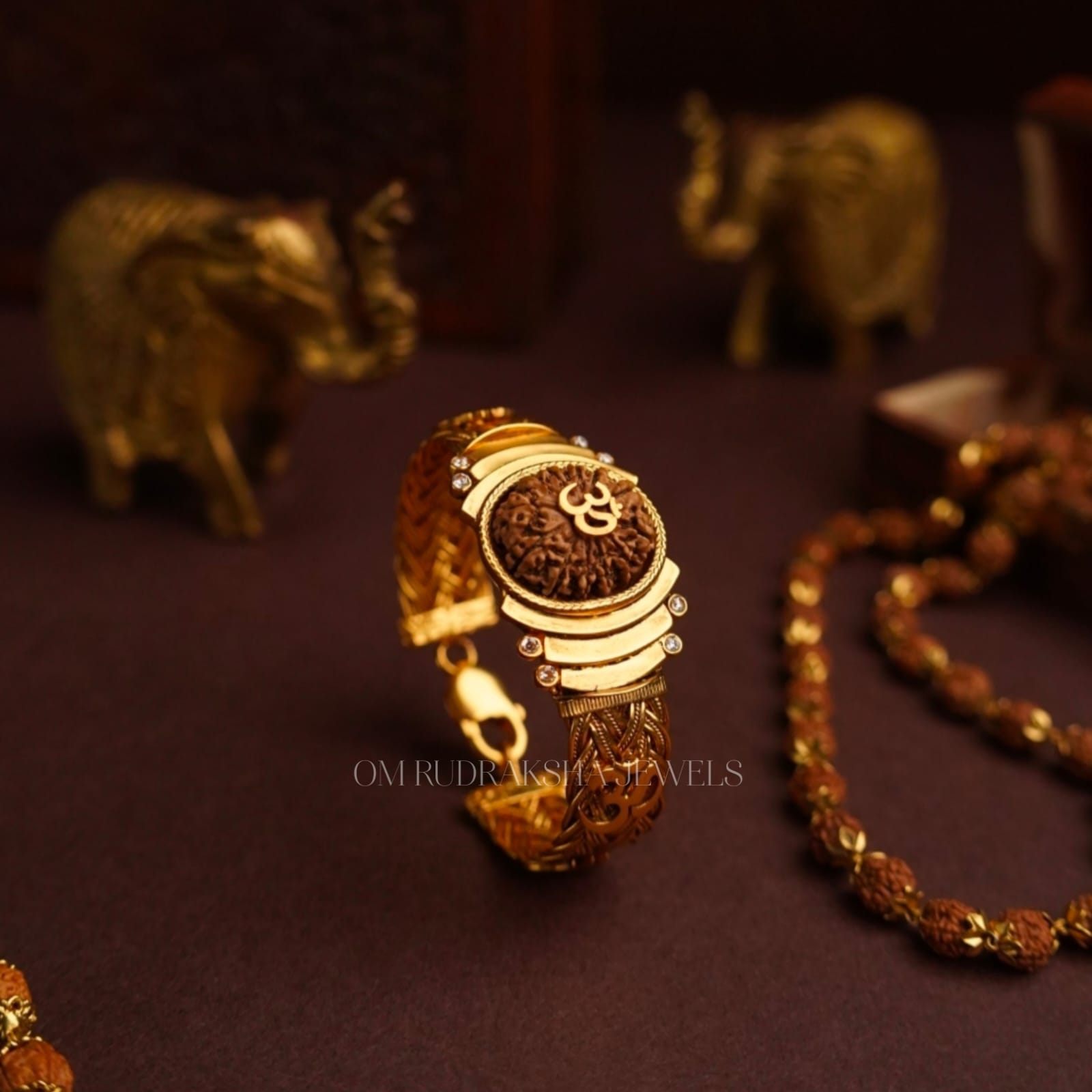 Premium Nepal Rudraksha Bracelet with customizable metal, size, and certification options.